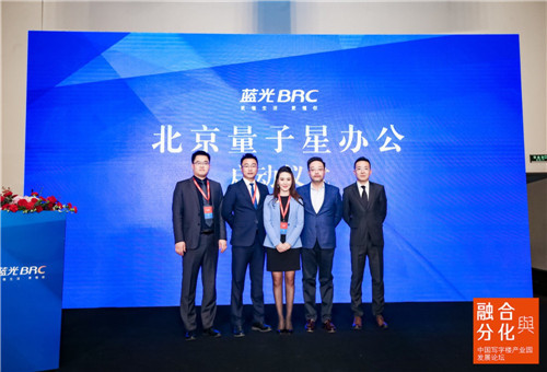 論壇現(xiàn)場(chǎng),藍(lán)光·北京量子星辦公亮相啟動(dòng)。藍(lán)光文商旅集團(tuán)京津區(qū)域總經(jīng)理李璐璐、藍(lán)光文商旅集團(tuán)商業(yè)經(jīng)營(yíng)管理公司常務(wù)副總經(jīng)理史德威、藍(lán)光商業(yè)集團(tuán)北京海悅城市場(chǎng)總監(jiān)呂樂宇、藍(lán)光商業(yè)集團(tuán)北京海悅城招商總監(jiān)馮耀魯、藍(lán)光商業(yè)集團(tuán)北京海悅城人力行政總監(jiān)田宇共同上臺(tái),在現(xiàn)場(chǎng)近200位嘉賓的共同見證下,量子星辦公落地北京,耀目綻放。