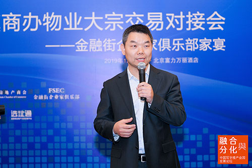 全聯(lián)房地產(chǎn)商會副秘書長兼房訊控股董事長劉凱表示,對接會是全聯(lián)房地產(chǎn)商會和金融街企業(yè)家俱樂部是兩大平臺一次跨界合作的典范,"選址通"大宗物業(yè)交易平臺,目標(biāo)聚合前100強(qiáng)房地產(chǎn)開發(fā)商企業(yè)和項(xiàng)目,致力于提供平臺服務(wù)和優(yōu)秀項(xiàng)目,服務(wù)于國內(nèi)外企業(yè)、機(jī)構(gòu)、基金和投資者的商業(yè)地產(chǎn)大宗交易需求,也就是服務(wù)于在座的20位來自上市公司、金融機(jī)構(gòu)的高管朋友們。我們今天主要目的是交朋友,希望我們開發(fā)商企業(yè)能夠和諸位上市公司、金融機(jī)構(gòu)的高管朋友們,在保持友誼的基礎(chǔ)上尋找雙方合作共贏的機(jī)會。