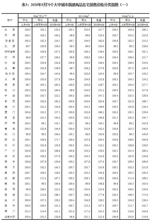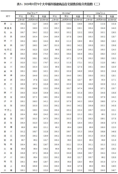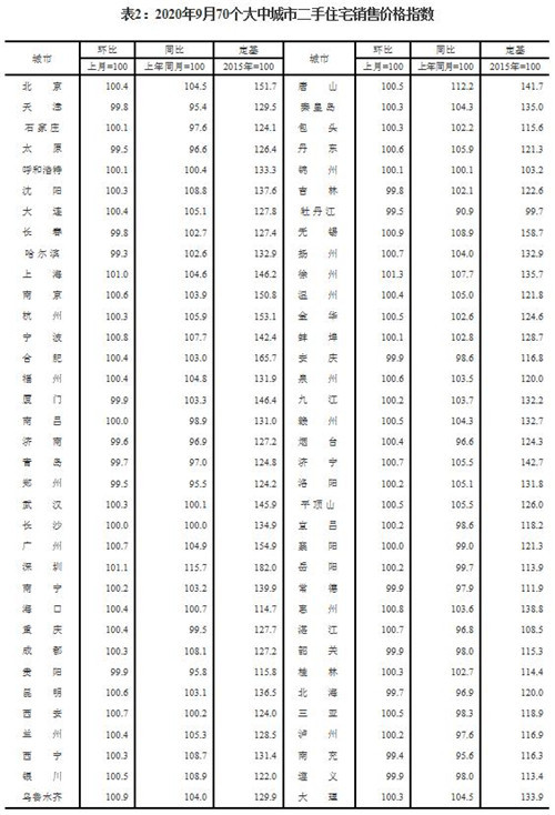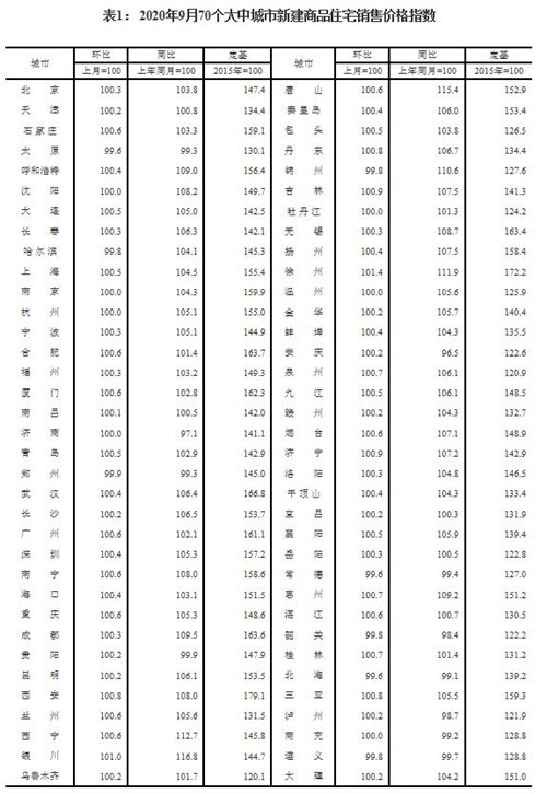 統(tǒng)計(jì)局:9月70城商品住宅銷售價(jià)格漲幅略有回落