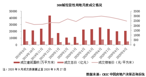 土地市場(chǎng)方面,9月一線城市成交建面為412萬(wàn)平方米,平均樓板價(jià)降至11203元/平方米,環(huán)比下跌超過(guò)4成;二線城市成交建面為3667萬(wàn)平方米,環(huán)比減少了28%;平均樓板價(jià)達(dá)4366元/平方米。