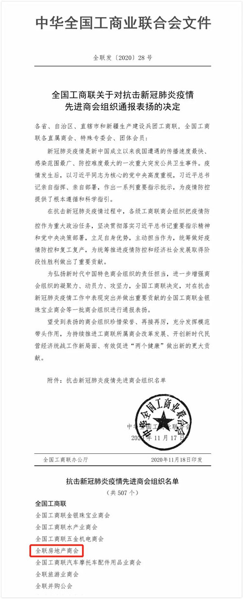 全聯(lián)房地產(chǎn)商會(huì)榜上有名!