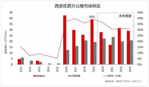 2020年預計市場將新增三個甲級辦公樓項目,分別是位于高新南的永威時代中心、國瑞西安國際金融中心和位于城北的保利廣場。