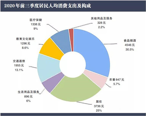 房地產(chǎn)作為國民經(jīng)濟(jì)支柱產(chǎn)業(yè),無論是在投資端還是消費(fèi)端,均對經(jīng)濟(jì)增長起到至關(guān)重要的作用。作為消費(fèi)品,住房消費(fèi)剔除房屋購置消費(fèi),就已經(jīng)占到CPI權(quán)重的近20%,僅次于食品消費(fèi)。國家統(tǒng)計(jì)局公布的今年前三季度居民人均消費(fèi)支出構(gòu)成情況顯示,居住類消費(fèi)支出占比達(dá)25%。
