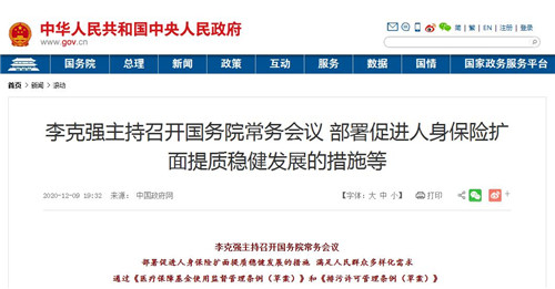 國務(wù)院總理李克強12月9日主持召開國務(wù)院常務(wù)會議,部署促進(jìn)人身保險擴(kuò)面提質(zhì)穩(wěn)健發(fā)展的措施,滿足人民群眾多樣化需求;通過《醫(yī)療保障基金使用監(jiān)督管理條例(草案)》和《排污許可管理條例(草案)》。