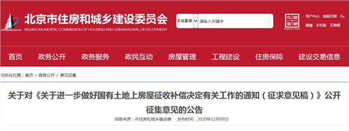 12月9日,北京市住建委發(fā)布《關(guān)于進一步做好國有土地上房屋征收補償決定有關(guān)工作的通知(征求意見稿)》,并面向社會公開征求意見。為避免后期房地產(chǎn)市場價格波動可能對被征收人造成的不利影響,通知擬提出,區(qū)政府原則上應(yīng)自征收補償方案確定的簽約期滿之日起6個月內(nèi)作出補償決定。
