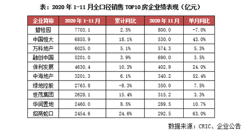 進(jìn)入12月以來(lái),房企陸續(xù)公布前11月的銷(xiāo)售業(yè)績(jī)。在全年業(yè)績(jī)出爐之前,前11月的業(yè)績(jī)就像“摸底”考試,各家房企在2020年表現(xiàn)如何,已初步有了答案。