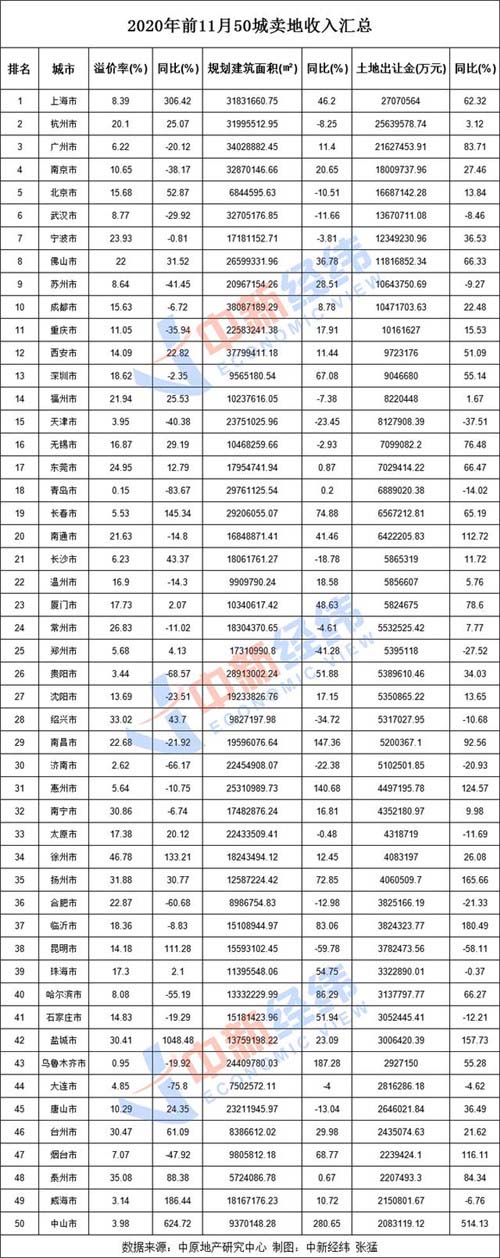 中原地產(chǎn)研究中心統(tǒng)計(jì)數(shù)據(jù)顯示,2020年前11月50城賣地收入3.67萬億,同比增20.8%,均刷新歷史紀(jì)錄。