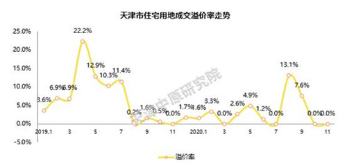 圖3:天津市2019-2020年11月住宅土地溢價(jià)率走勢