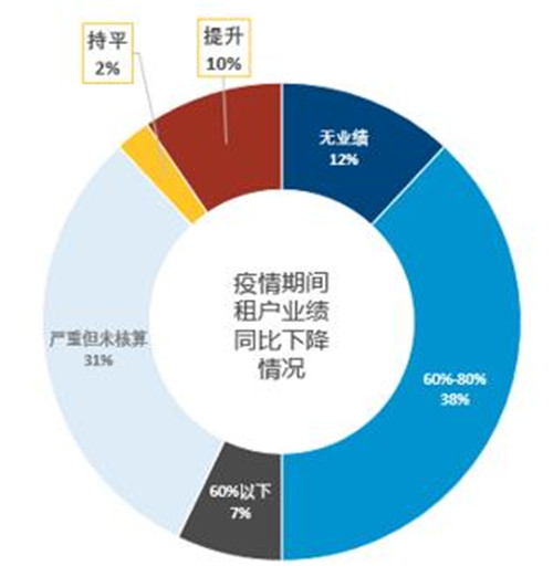 在疫情壓力下,仍有約12%的租戶業(yè)績未受影響甚至有所增長,如服裝與兒童零售、線上教育、超市等業(yè)態(tài)因線上消費客群劇增,同時通過線上廣告投放、優(yōu)惠折扣與新媒體營銷等活動措施,使?fàn)I業(yè)額同比持平甚至提升。