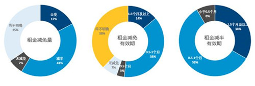 在疫情籠罩下,多數(shù)零售物業(yè)業(yè)主響應(yīng)政府號召,并表示愿意與租戶共渡時艱,已紛紛出臺租金減免政策,其中有約41%的業(yè)主將租金減半,17%的業(yè)主更是免除租金,僅有7%的業(yè)主暫無任何減免政策;而租金減免有效期較多為0.5-1個月,減半的業(yè)主傾向于給予租戶更長的有效期。