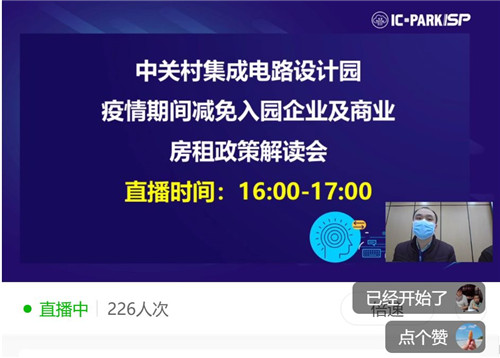 IC PARK積極響應(yīng)國(guó)家關(guān)于中小微企業(yè)房租減免政策號(hào)召、及時(shí)落實(shí)北京市人民政府“16”條措施中房租減免具體舉措,制定中關(guān)村集成電路設(shè)計(jì)園疫情期間房租減免相關(guān)政策,于2月22日將IC PARK園區(qū)相應(yīng)房租減免政策通知下發(fā)至園區(qū)入駐企業(yè)、商戶(hù)。并于2月24日下午通過(guò)網(wǎng)絡(luò)在線直播形式開(kāi)展“中關(guān)村集成電路設(shè)計(jì)園疫情期間減免入園企業(yè)及商業(yè)房租政策解讀會(huì)”就此事進(jìn)行詳細(xì)介紹在線宣講及在線答疑。