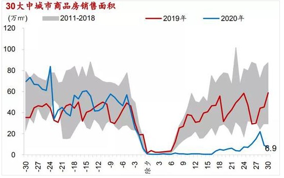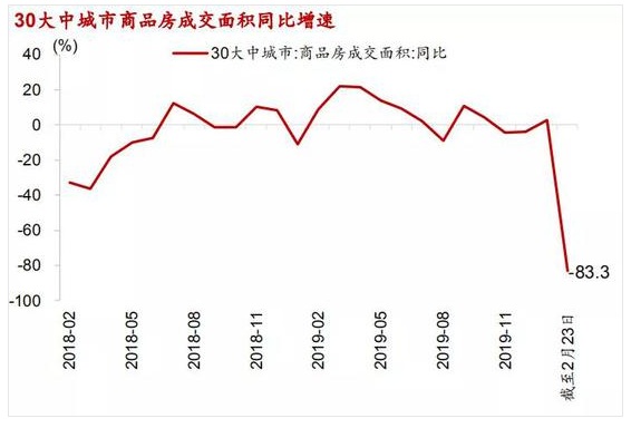 這主要是因為受疫情影響,1月26日中國房地產業(yè)協(xié)會發(fā)出倡議,號召房地產企業(yè)暫停售樓處銷售活動,疫情過后再行恢復。在此號召下,多地房地產業(yè)協(xié)會先后響應,發(fā)布公告暫停售樓處銷售活動。據不完全統(tǒng)計,截至1月末,已有60余個城市住建部門發(fā)布通知,要求暫停售樓處營銷活動。此外,部分地區(qū)甚至暫停房地產中介服務活動,例如門店暫停營業(yè)、不得組織現(xiàn)場看房等。在新冠疫情的沖擊下,這個新春的房地產銷售格外寂寥,特別是對三四線城市而言。