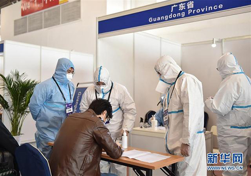 入境人員在離開機場海關(guān)前要進行健康申報及體溫篩查,進入新國展集散地前要再進行體溫篩查。在新國展內(nèi),駐地醫(yī)療點負責(zé)對各工作團隊及入境人員發(fā)熱、咳嗽等健康異常情況進行排查及應(yīng)急處置。