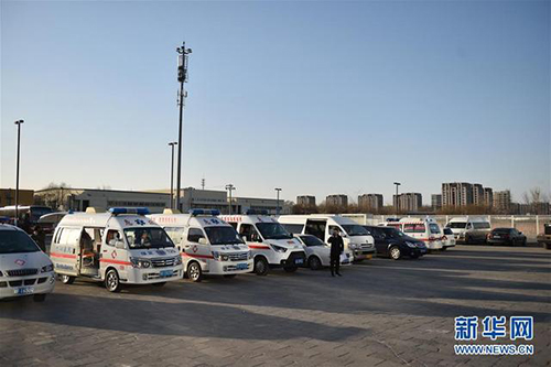 3月14日,在北京新國展停車場,河北省集散點工作人員準備運送目的地為河北的入境人員。新華社發(fā)(陳鐘昊攝)