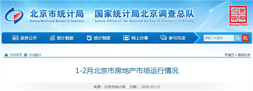 房訊網(wǎng)訊 3月17日,北京市統(tǒng)計局發(fā)布1-2月北京市房地產(chǎn)市場運行情況。