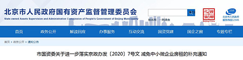 市國資委關(guān)于進一步落實京政辦發(fā)〔2020〕7號文 減免中小微企業(yè)房租的補充通知