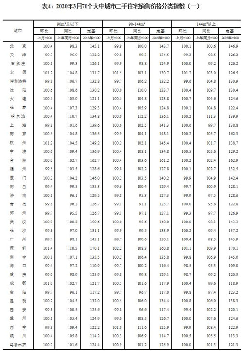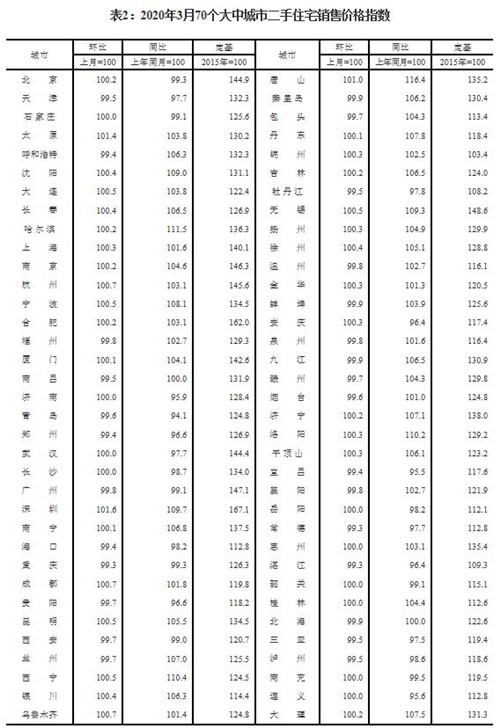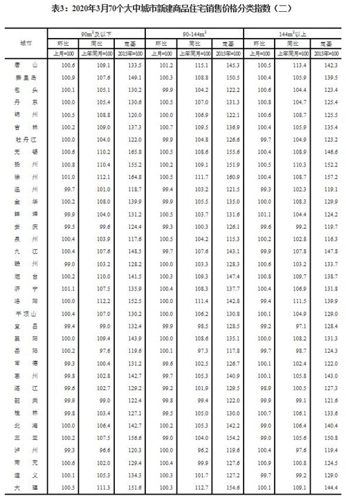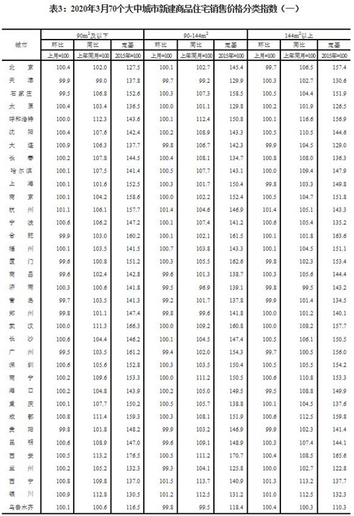 2020年3月份70個大中城市商品住宅銷售價格變動情況