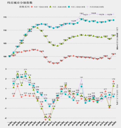 一線城市房價較快恢復,二三四線城市房價均較為平穩(wěn)。緯房城市分級指數(shù)顯示,一線城市近3個月房價累計上漲1.47%,漲速穩(wěn)中略高。近3個月二線城市房價累計上漲0.59%,三線城市房價累計上漲0.75%,四線城市房價累計上漲0.28%,房價相對穩(wěn)定,未因疫情沖擊出現(xiàn)下降。