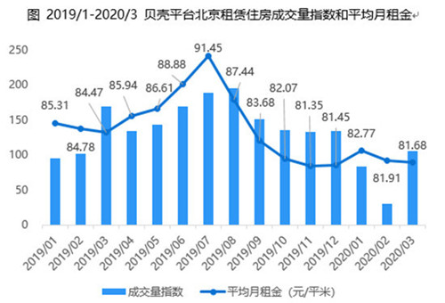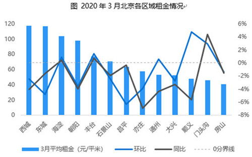 租金保持穩(wěn)定。3月份,貝殼平臺北京租賃住房平均租金81.68元/平米/月,環(huán)比下降0.3%,同比下降3.3%。疫情防控導致北京流動人口尚未全部抵京,節(jié)后租賃需求并未完全釋放,市場受供需影響租金并未出現(xiàn)上漲。