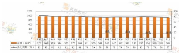 七區(qū)商品住宅存量909萬㎡,去化周期77周。