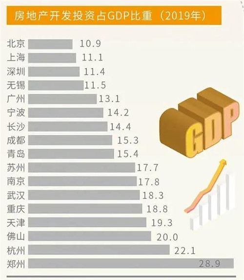 日前,國家信息中心發(fā)布2020年“萬億俱樂部城市”房地產(chǎn)市場走勢(shì)研判,2019年17個(gè)GDP萬億城市房地產(chǎn)投資依存度隨之出爐,鄭州最高,北京最低。