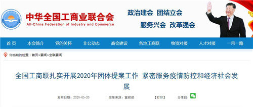 全國(guó)工商聯(lián)堅(jiān)決貫徹習(xí)近平總書記關(guān)于統(tǒng)籌推進(jìn)新冠肺炎疫情防控和經(jīng)濟(jì)社會(huì)發(fā)展工作的重要指示精神,立足履行參政議政職能,圍繞“兩個(gè)健康”工作主題,扎實(shí)開展2020年團(tuán)體提案工作。