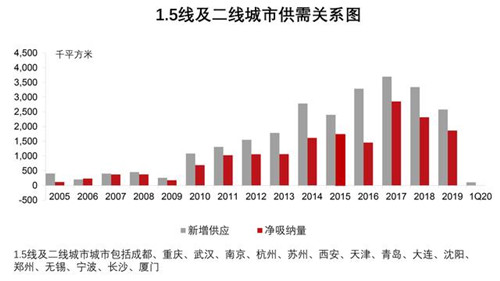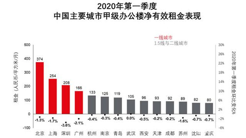 二線城市普遍面臨的市場壓力也較為明顯,尤其是市場剛剛經(jīng)歷了2019年經(jīng)濟(jì)不確定性所帶來的種種變化。本季度由于武漢的租賃活動基本停滯,市場租金無變化外,在仲量聯(lián)行跟蹤的其他1.5線及二線城市中,所有城市均錄得一定程度上的租金下跌。