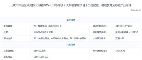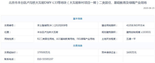 北京市豐臺(tái)區(qū)盧溝橋大瓦窯DWY-L33等地塊(大瓦窯新村項(xiàng)目一期)二類居住、基礎(chǔ)教育及綠隔產(chǎn)業(yè)用地,出讓宗地中居住用途全部用于建設(shè)商品住房,不設(shè)定房屋銷售限價(jià)及戶型限制要求。