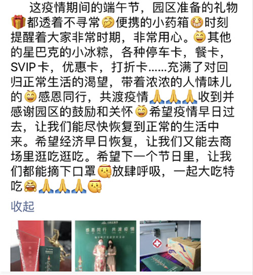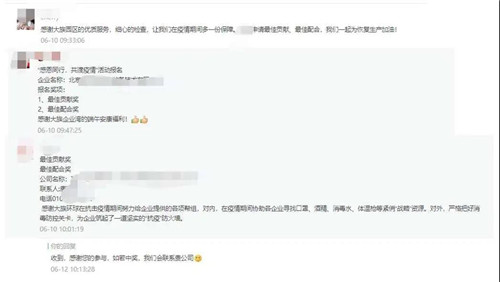除了給企業(yè)頒發(fā)疫情期間最佳恭喜獎、最佳配合獎外,我們還給所有簽約企業(yè)送去疫情期間的溫暖、端午節(jié)的問候。