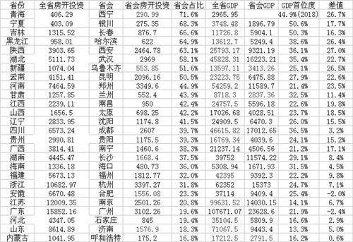湖北省社科院研究員彭智敏對第一財經(jīng)記者分析,省會城市一般房價更高,比如武漢房價就是省內(nèi)一般市縣的好幾倍,因此省會城市房地產(chǎn)開發(fā)投資額度一般也會比較高,通常會比GDP占全省的比重高不少。