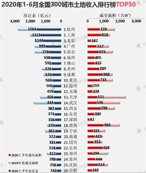 近年來,杭州土地成為眾多房企必爭之地。中國指數(shù)研究院發(fā)布的《2020上半年土地市場》顯示,2020年上半年,全國300城市土地出讓金總額為23716億元,同比增長3%。其中,杭州土地市場上半年收金總額突破1500億,連續(xù)三年居年中榜首,一度超越北京、上海、廣州等一線城市。