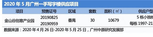 本月市場(chǎng)供應(yīng)均來(lái)自番禺區(qū)金山谷創(chuàng)意產(chǎn)業(yè)園,項(xiàng)目入市5棟全新小獨(dú)棟寫字樓,每棟約1997-2170㎡,公開售價(jià)約2.5萬(wàn)元/㎡。