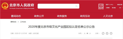 2020年度北京市級文化產(chǎn)業(yè)園區(qū)擬認定名單公示