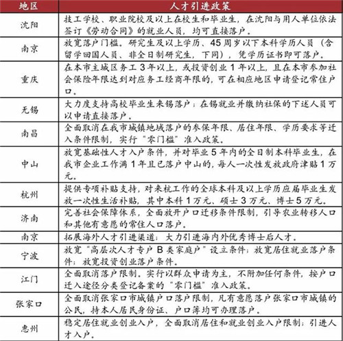 多個(gè)城市在堅(jiān)守限購(gòu)限價(jià)底線的同時(shí),在需求端更多從放寬人口落戶、降低人才引進(jìn)門(mén)檻、加大購(gòu)房補(bǔ)貼等方面落實(shí)。上半年,杭州、南京、寧波、廈門(mén)、江門(mén)、張家口、惠州市等城市均發(fā)布了放寬落戶、人才引進(jìn)等相關(guān)政策。