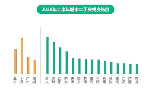 疫情影響下,不同城市級(jí)別的二手房找房熱度也有所不同。58安居客房產(chǎn)研究院監(jiān)測(cè)結(jié)果顯示,2020年上半年,一線(xiàn)城市中,北上深二手房訪(fǎng)問(wèn)熱度同比漲幅均超過(guò)10%。其中,上海的二手房找房熱度領(lǐng)先,其次為北京。新一線(xiàn)城市中,重慶、成都、沈陽(yáng)二手房訪(fǎng)問(wèn)熱度排在前三。成都、長(zhǎng)沙、東莞二手房訪(fǎng)問(wèn)熱度同比漲幅超過(guò)一成。這些城市不僅經(jīng)濟(jì)增長(zhǎng)速度快,美食美景和舒適的生活氛圍也得到許多年輕人的青睞。
