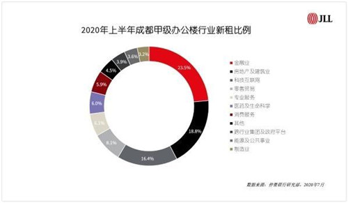 房地產(chǎn)建筑業(yè)辦公需求回暖。隨著東部新區(qū)設(shè)立,成都城市版圖擴容,新區(qū)開發(fā)帶動城市化提速,基建與房地產(chǎn)投資必將隨之而來。房地產(chǎn)建筑業(yè)的辦公需求上半年上升明顯,新租占比達(dá)18.8%,較2019年高出5.1個百分點。