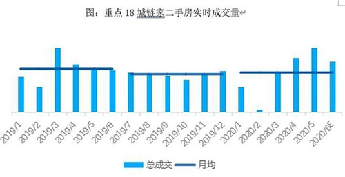 在二手房市場(chǎng),3月份成交開(kāi)始韌性復(fù)蘇。貝殼研究院數(shù)據(jù)顯示,重點(diǎn)18城鏈家二手房成交量比1-2月成交總量增長(zhǎng)41.8%,4、5兩月環(huán)比增速分別達(dá)到39%和19%。6月成交雖然比5月有所回落,但同比依舊增加21%。