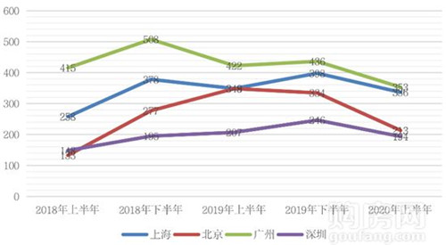 在2020年上半年,這些城市土地市場成交熱度明顯要高于其他三四線城市,土地出讓特別是住宅用地往往是高溢價成交,南通、無錫等更是頻頻出現(xiàn)競拍超百輪的現(xiàn)象,吸引了多家規(guī)模房企前來布局。