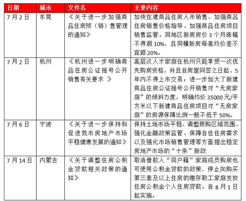據(jù)不完全統(tǒng)計,今年7月份,包括杭州、東莞、寧波、內(nèi)蒙古、鄭州、深圳、南京等7個房價有所上漲的城市開始出臺房地產(chǎn)調(diào)控收緊政策。