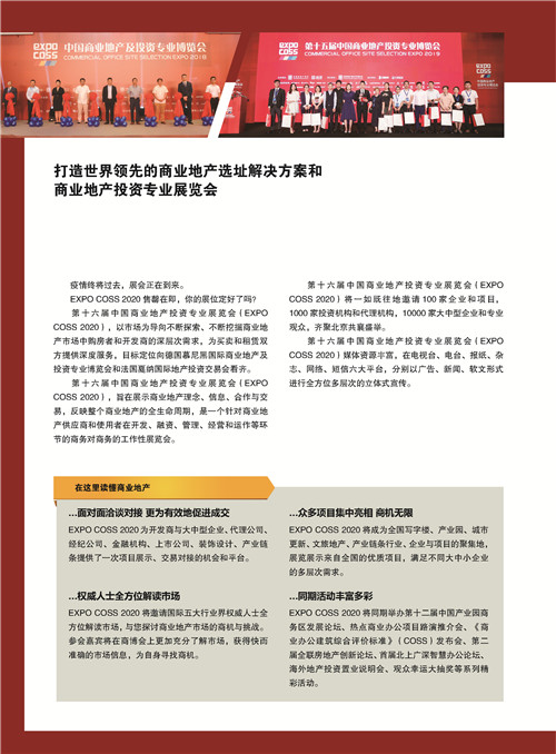 2020年9月11-12日,第十六屆中國(guó)商業(yè)地產(chǎn)投資專業(yè)展覽會(huì)與您相約北京富力萬麗酒店,行業(yè)盛會(huì),敬請(qǐng)期待!