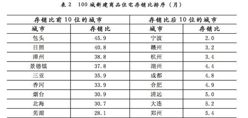 而100個(gè)城市中一、二、三四線的新建商品住宅存銷比分別為13.9、11.3和12.0個(gè)月。根據(jù)報(bào)告,存銷比排名前十位的城市是包頭、日照、漳州、景德鎮(zhèn)、三亞、香河、煙臺(tái)、北海、蕪湖、武漢。除武漢外,剩下9個(gè)城市都是三四線城市。這意味著雖然二線城市的庫存規(guī)模有比較明顯的攀升,但存銷比數(shù)據(jù)低于一線和三四線城市。