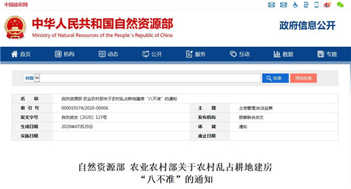 自然資源部 農(nóng)業(yè)農(nóng)村部關于農(nóng)村亂占耕地建房“八不準”的通知