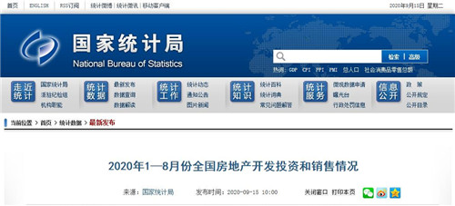 房訊網(wǎng)訊 9月15日,國(guó)家統(tǒng)計(jì)局發(fā)布2020年1—8月份全國(guó)房地產(chǎn)開(kāi)發(fā)投資和銷(xiāo)售情況,數(shù)據(jù)顯示,1-8月份全國(guó)商品房銷(xiāo)售額96943億元,增長(zhǎng)1.6%。