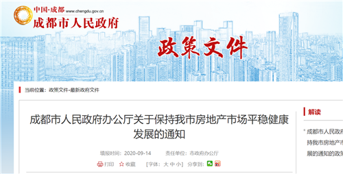 房訊網(wǎng)訊 9月14日,成都市人民政府辦公廳發(fā)布《成都市人民政府辦公廳關(guān)于保持我市房地產(chǎn)市場平穩(wěn)健康發(fā)展的通知》。