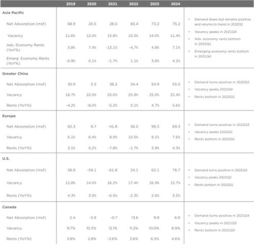 《2020年全球?qū)懽謽怯绊懷芯俊返闹饕l(fā)現(xiàn)集中在2022年經(jīng)濟(jì)和就業(yè)的全面復(fù)蘇,以及隨著空置率開(kāi)始下降和租金開(kāi)始上升,對(duì)辦公空間的相應(yīng)需求。到2025年,全球?qū)懽謽强罩寐暑A(yù)計(jì)將恢復(fù)到危機(jī)前約11%的水平,租金將恢復(fù)到危機(jī)前的峰值水平。