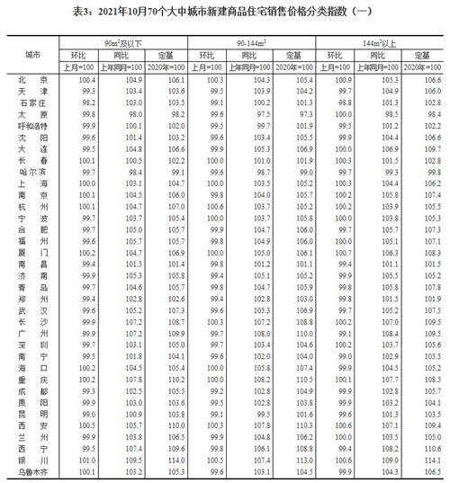 房訊網(wǎng)訊 11月15日,國家統(tǒng)計(jì)局發(fā)布10月份70個大中城市商品住宅銷售價格變動情況。