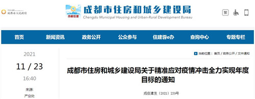 房訊網(wǎng)訊 11月23日,成都市住房和城鄉(xiāng)建設(shè)局發(fā)布關(guān)于精準應(yīng)對疫情沖擊全力實現(xiàn)年度目標的通知,要求進一步強化企業(yè)服務(wù)力度,優(yōu)化營商環(huán)境,促進企業(yè)穩(wěn)產(chǎn)滿產(chǎn),確保完成年度目標。