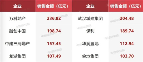 房企武漢案場(chǎng)銷售額百億榜 來源:中指院