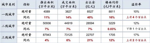 2020年不同城市土地市場(chǎng)情況 來源:中指院
