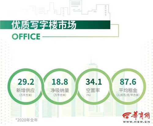 在2020年全年,西安寫字樓空置率環(huán)比下降0.6個(gè)百分點(diǎn),至34.1%;優(yōu)質(zhì)寫字樓租金報(bào)價(jià)環(huán)比上升0.3%,為每月87.6元/㎡。